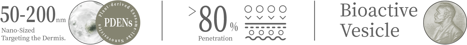 - naturally secreted nanoscale, bilayer membrane vesicles from plants. These minute plant actives are veritable powerhouses, abundantly rich in proteins, lipids, nucleic acids and other vital bioactive compounds. They not only facilitate essential intercellular communication in plants, but also deliver potent antioxidant protection and skin-soothing benefits, nurturing both plant and human dermal vitality.